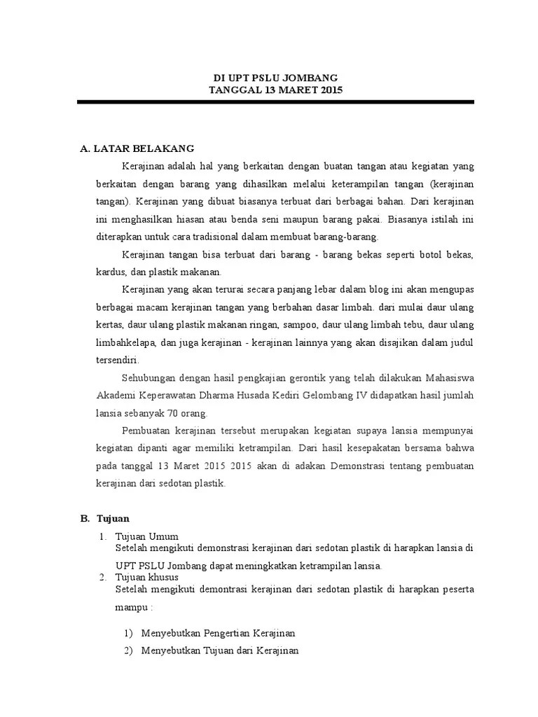 Proposal usaha ini dibuat untuk memenuhi tugas pelajaran prakarya dan kewirausahaan tahun pelajaran 2016/2017. Pemanfaatan limbah kayu sebagai media. Menyebut nama allah swt yang maha pengasih . Contoh proposal kerajinan dari bahan limbah. • pemakaian plastik pada bahan baku .