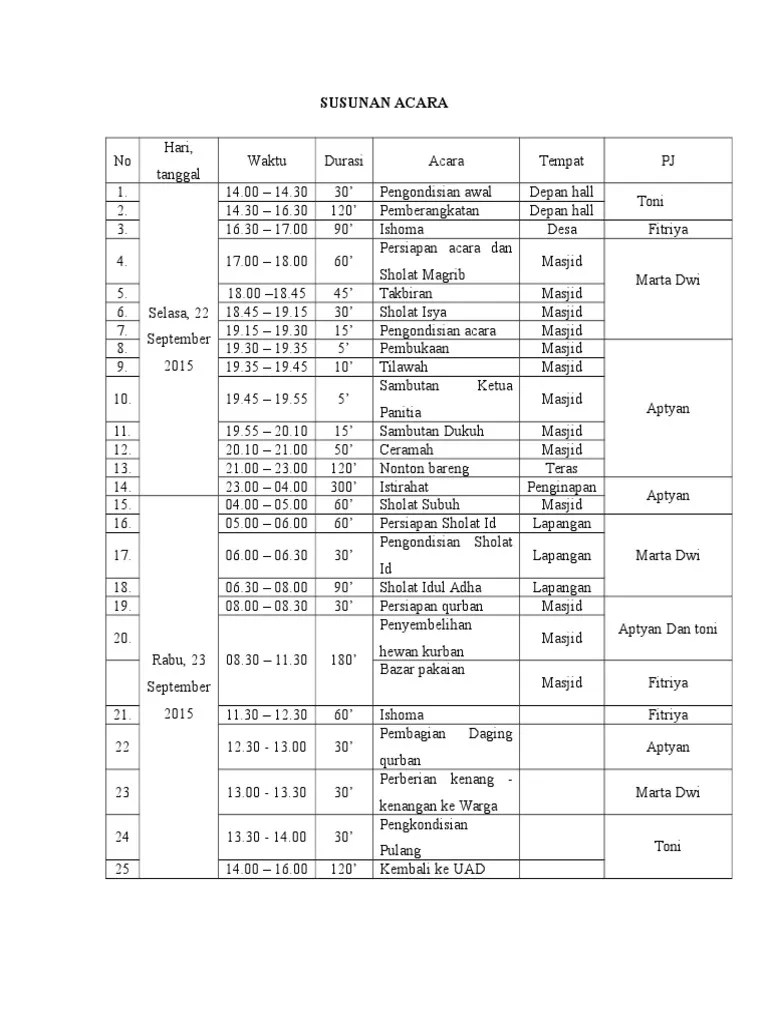 Contoh Proposal Jamnas : SUSUNAN ACARA QURBAN / Pemberian tepung kulit manggis diberikan broiler pada umur 7 hari sampai umur 24 hari di bagi menjadi 2 kelompok perlakuan yaitu perlakuan kontrol .